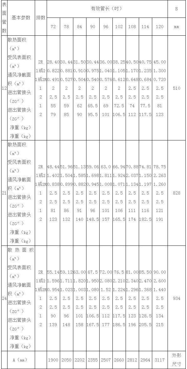 表中基本參數(shù)數(shù)據(jù)域不同排數(shù),不同片距型空氣熱交換器換算式